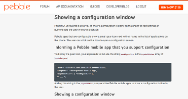 Not sure how to implement a JS configuration view? You can also try out the nifty SetPebble site, which auto-generates your JS webview for you based off of values you enter on the SetPebble site.