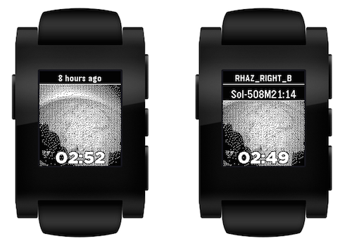 - Pebble Mars (source code) displays (almost) realtime pictures from Curiosity, as well as the current time on Mars.