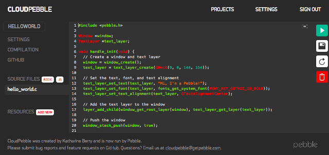 CloudPebble saw an update to its look last week and is now easier to use than ever! Some of the functional improvements to CloudPebble include: