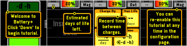 When you first open the app, you are met with a detailed tutorial that describes how to use the app, as well as what it can do. Clicking through the lengthy animation can give you details about what the buttons are used for, what kind of data the app tracks, and the different ways you can view the data. If you click through the app, you can get more detailed information, such as the maximum life of your Pebble and how long it has lasted for.