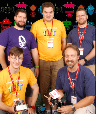 Jonathan (upper left) and his robot team at the 2014 Pebble Developer Retreat.