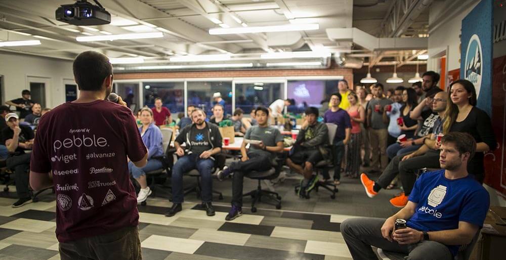 Our first steps down the red brick paved Pearl St in downtown Boulder Colorado set the tone for the weekend. The streets were bustling with activity. Street musicians were setting up their stage. Students and locals alike were just getting started with their Friday evening, funneling into the many restaurants and bars that lined the street. We had a different target, Galvanize-Boulder, the coworking space that was the venue of Pebble's first hardware hackathon, Pebble Rocks Boulder. This would prove to be one of the most successful and worthwhile events we've had the pleasure of attending. Here are 5 ideas on what made Pebble Rocks Boulder great.