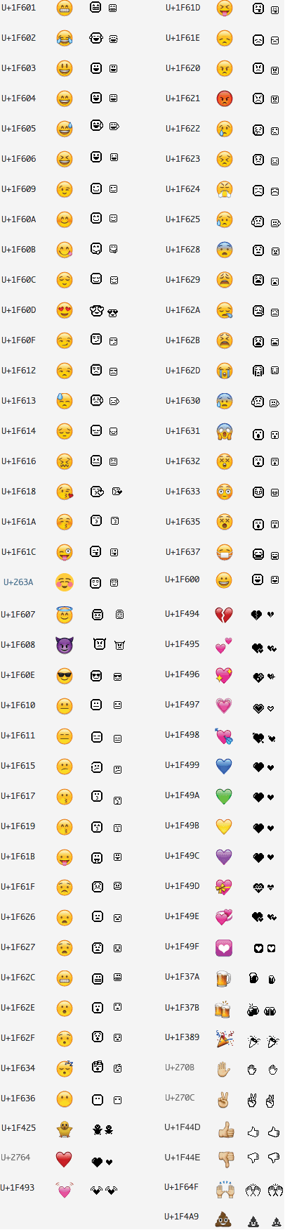 A subset of the built-in system fonts support the use of a set of emoji characters. These are the Gothic 24, Gothic 24 Bold, Gothic 18, and Gothic 18 Bold fonts, but do not include the full range.