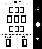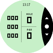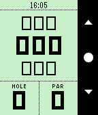 Golf アプリは、パーとホール番号、およびフロント、ミッド、リアヤーデージなど、ゴルフゲームに関連するデータの表示に特化しています。