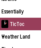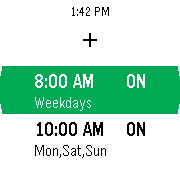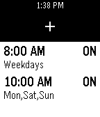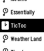 Apps such as the system Alarm app make use of a list of configurable items, with each active alarm treated as a menu item with properties. The status of each item is displayed in a menu, with the Select button initiating configuration of that item.