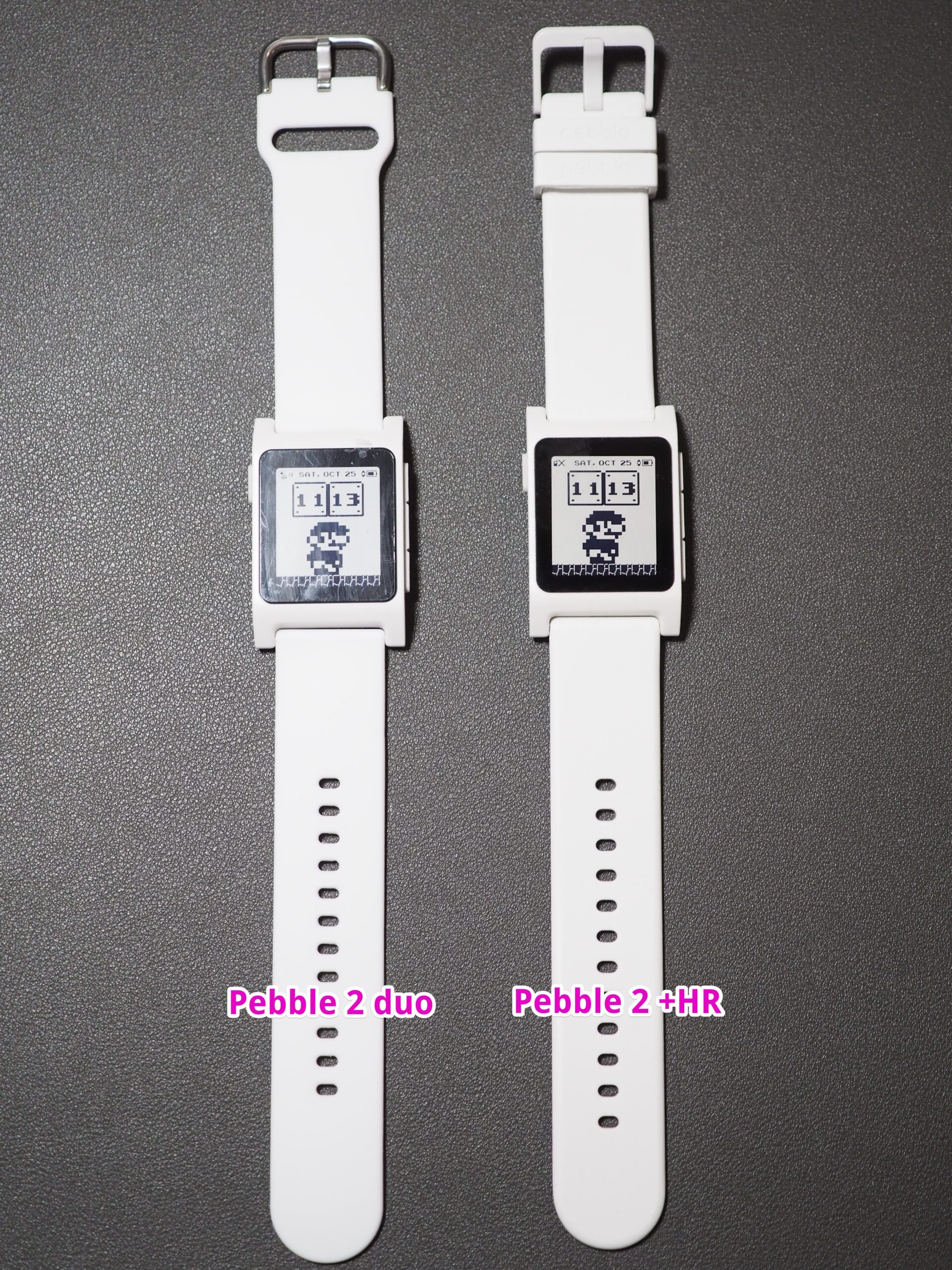 もともとのPebble 2は、初代のPebbleの進化版で、モノクロの電子ペーパーディスプレイを搭載したスマートウォッチでした。ラインナップとして、心拍数モニターを搭載しているものと搭載してないものがありましたが、Pebble 2 duoは、心拍数モニターを搭載していない版のやり直しモデルになります。