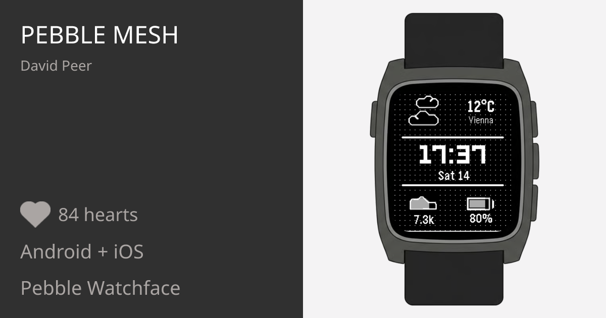 Pebble Mesh is an open-source, retro-digital watch face designed for maximum clarity and essential stats. This face feat...