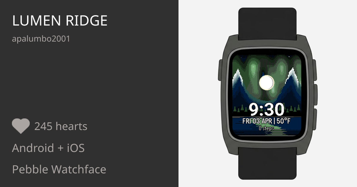 # Lumen Ridge**A cinematic landscape watchface for Pebble**Transform your wrist into a living alpine window. Lumen Ridge...